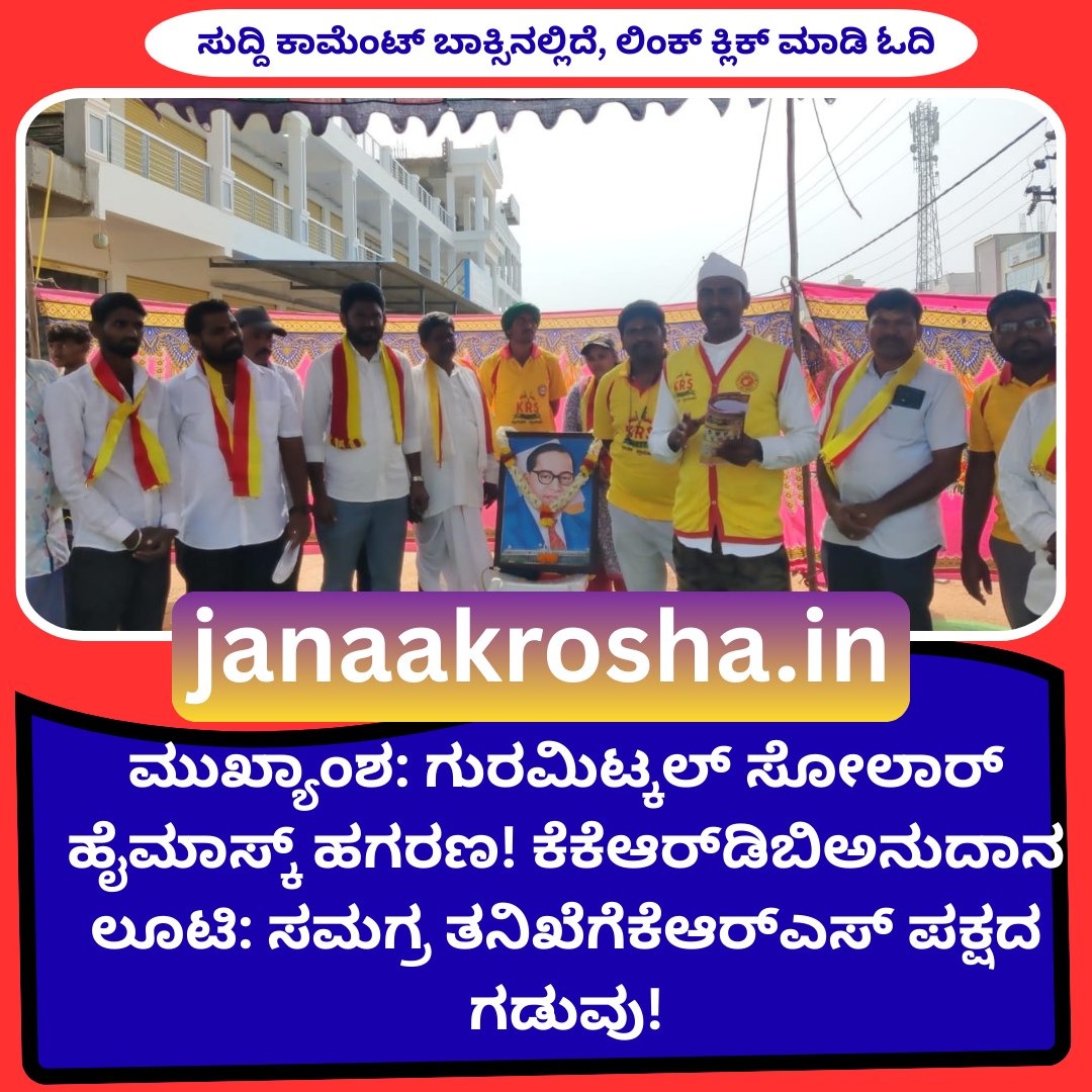 ಯಾದಗಿರಿ/ಗುರಮಿಟ್ಕಲ್:ಗುರಮಿಟ್ಕಲ್ ಮತಕ್ಷೇತ್ರದ ವ್ಯಾಪ್ತಿಯಲ್ಲಿ ಕಲ್ಯಾಣ ಕರ್ನಾಟಕ ಪ್ರದೇಶ ಅಭಿವೃದ್ಧಿ ಮಂಡಳಿಯ (ಕೆಕೆಆರ್ಡಿಬಿ) ಅನುದಾನದಲ್ಲಿ ಅನುಷ್ಠಾನಗೊಳಿಸಲಾದ ಸೋಲಾರ್ ಹೈಮಾಸ್ಕ್ ಕಾಮಗಾರಿಗಳಲ್ಲಿ ಕೋಟಿಗಟ್ಟಲೆ ರೂಪಾಯಿಗಳ ಭ್ರಷ್ಟಾಚಾರ ನಡೆದಿರುವ ಬಗ್ಗೆ ಗಂಭೀರ ಆರೋಪ ಕೇಳಿಬಂದಿದೆ. ಈ ಹಗರಣದ ಕುರಿತು ಸಮಗ್ರ ತನಿಖೆ ನಡೆಸಿ ತಪ್ಪಿತಸ್ಥ ಅಧಿಕಾರಿಗಳು ಮತ್ತು ಗುತ್ತಿಗೆದಾರರ ವಿರುದ್ಧ ಕಾನೂನು ಕ್ರಮ ಜರುಗಿಸುವಂತೆ ಆಗ್ರಹಿಸಿ ಕರ್ನಾಟಕ ರಾಷ್ಟ್ರ ಸಮಿತಿ (ಕೆಆರ್ಎಸ್) ಪಕ್ಷವು ಮಾನ್ಯ ಜಿಲ್ಲಾಧಿಕಾರಿಗಳಿಗೆ ಬಿಸಿಬಿಸಿ ಮನವಿಯನ್ನು ಸಲ್ಲಿಸಿದೆ.