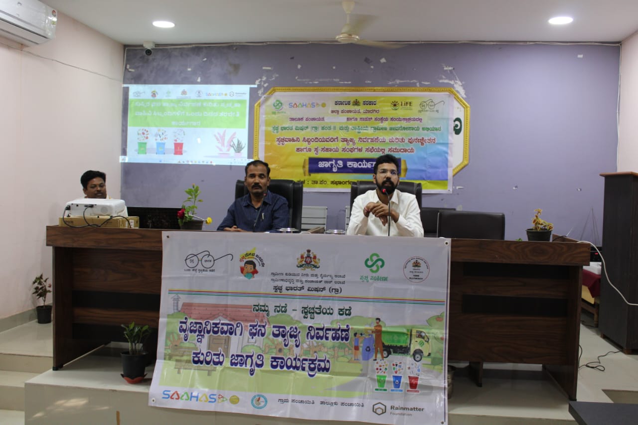 ಸಾಹಸ್ ಸಂಸ್ಥೆಯ ಜಿಲ್ಲಾ ಸಂಯೋಜಕರಾದ ರವಿಚಂದ್ರ ಚಟ್ನಳ್ಳಿ, ಸ್ವಚ್ಛ ಭಾರತ ಮಿಷನ್ ಯೋಜನೆಯ ಜಿಲ್ಲಾ ಸಂಯೋಜಕರಾದ ವೆಂಕಟೇಶ್, ನಾರಾಯಣ ತರಬೇತಿ ನೀಡಿದರು.